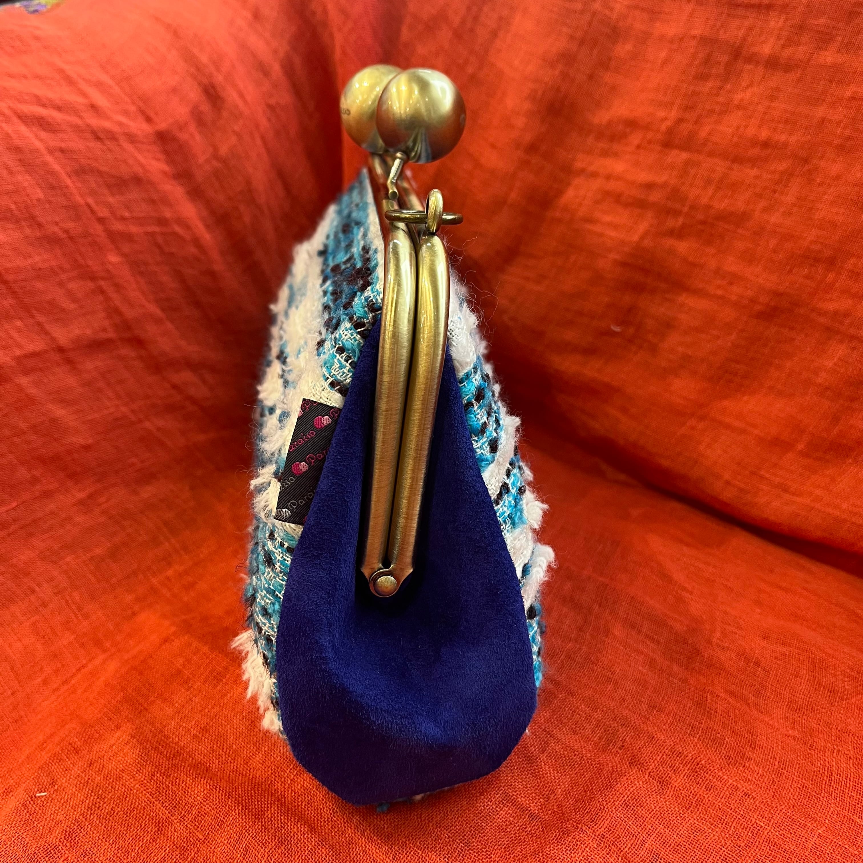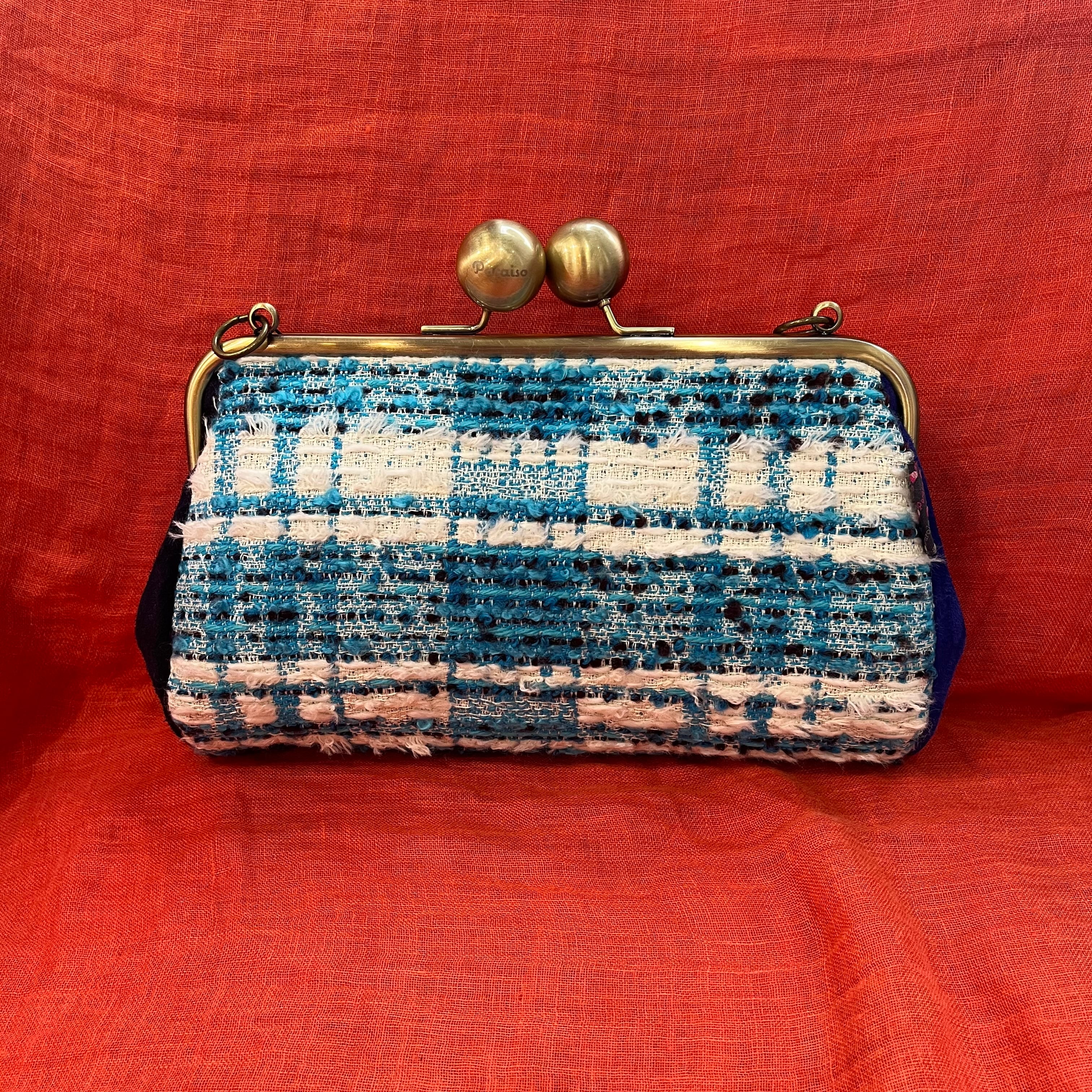 両面にホワイトとブルーのツイード生地を使用しています。ブルーの爽やかさとツイードの温かみの両方を兼ね備えた生地となっています。