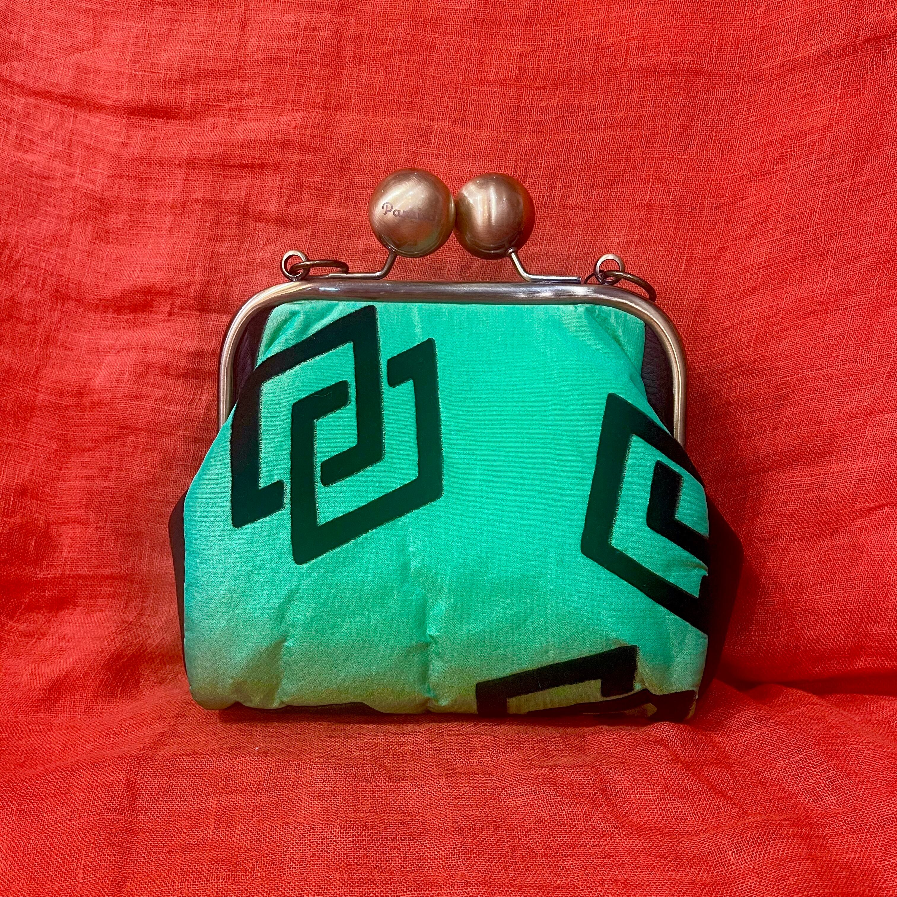 ビビットなグリーンが特徴的な幾何学模様の生地を使用しています。生地のスポーティーさとサイズ感の可愛らしさを兼ね備えております。