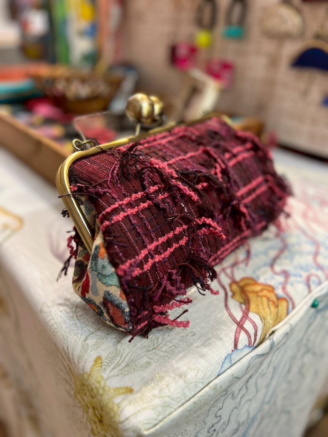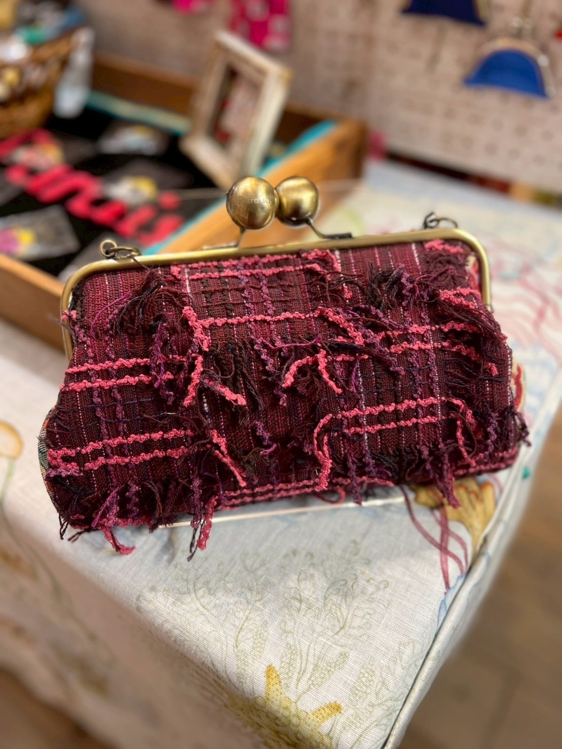 この時期に大活躍!長めのフリンジが特徴的!!フリンジの動きが可愛くがま口にぴったりの一品です。