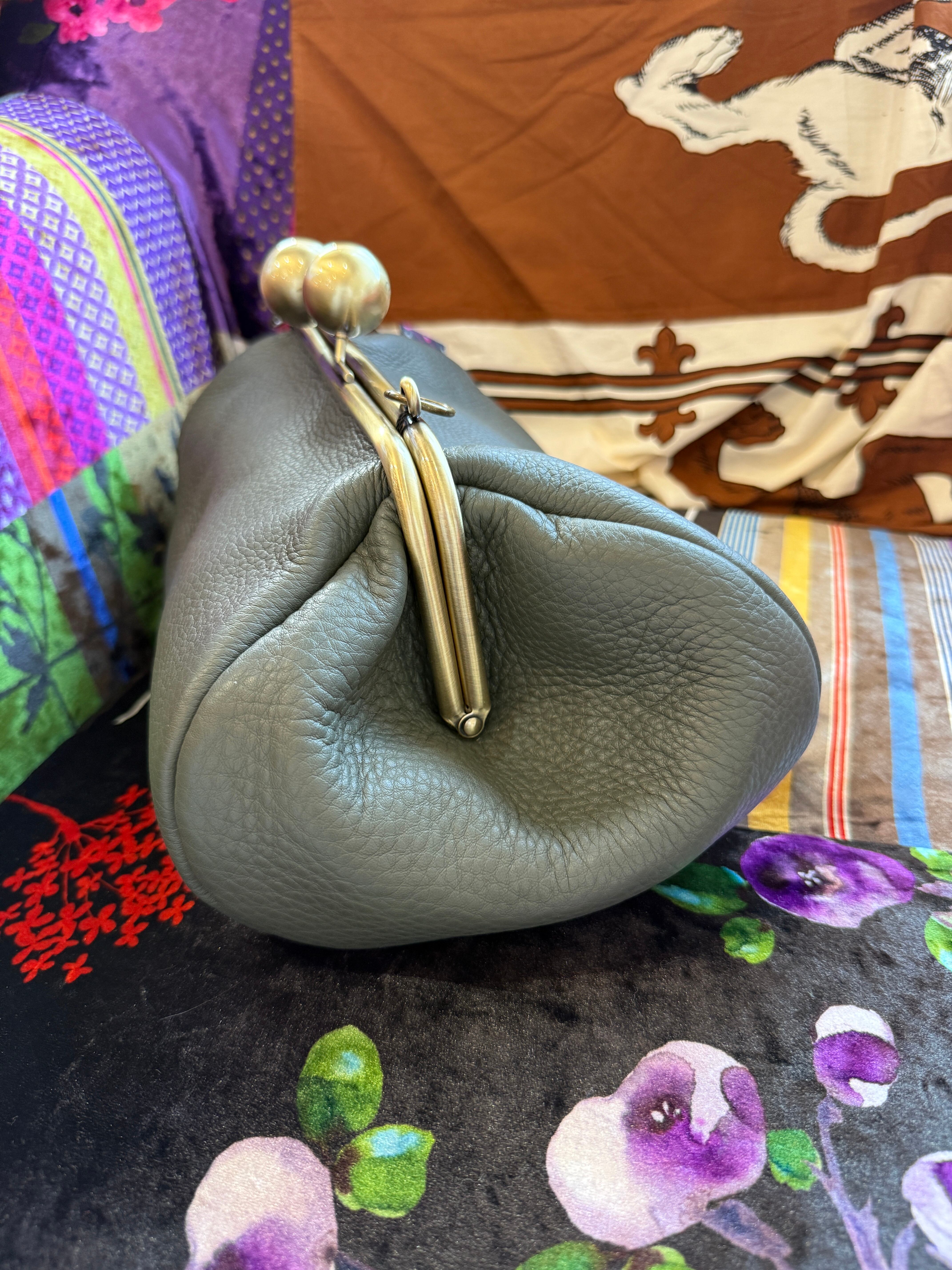 がま口バッグ(革ひも付)携帯・長財布・横にすれば