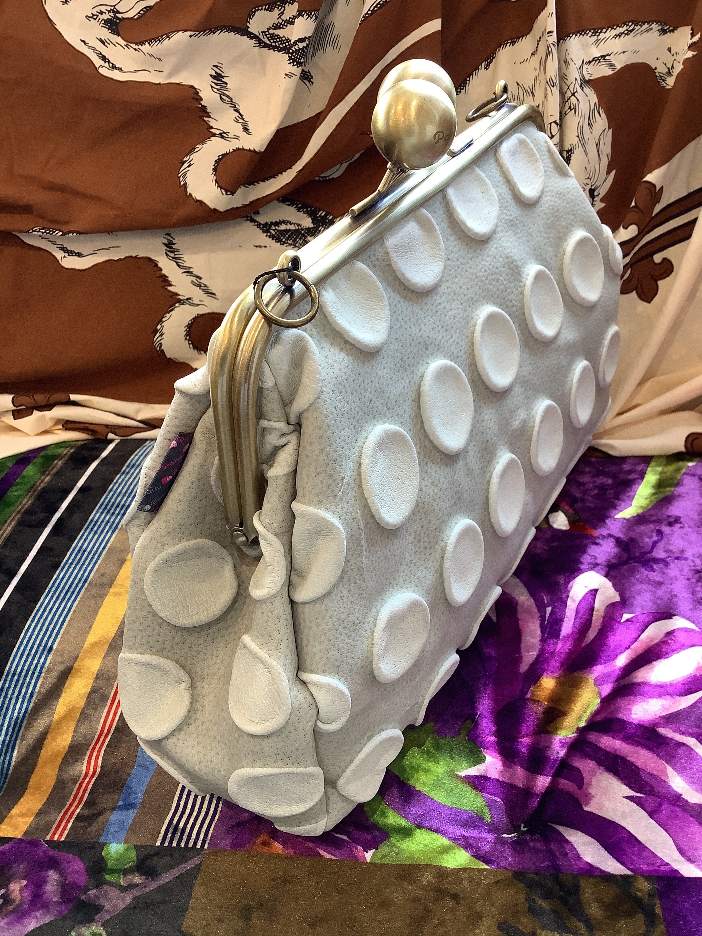 国産 ピッグレザー ドット ホワイト Lサイズ レクタングル